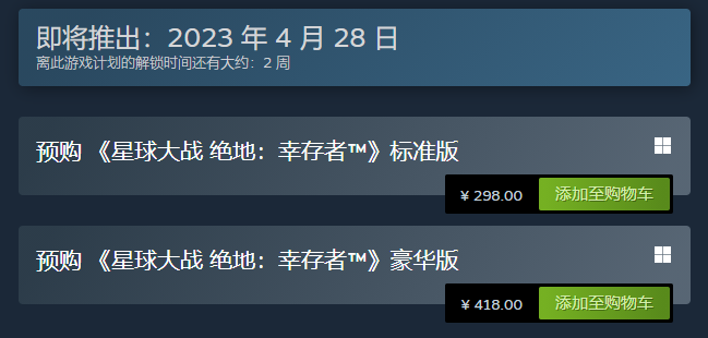 以上是《星球大战绝地幸存者豪华版值得买吗?豪华版和原版区别是什么?》详细内容,想获取更多游戏资讯,欢迎关注我们~