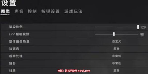 2、然后我们把渲染比例调成120、抗锯齿、材质、可视距离都设置为超高,鲜明度启用、垂直同步及运动模糊禁用。
