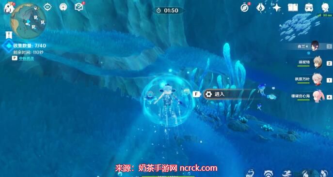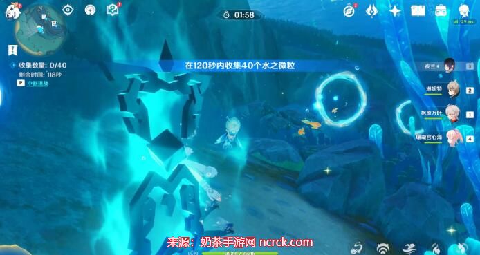 1、根据路线120秒内收集40个水之微粒。