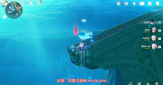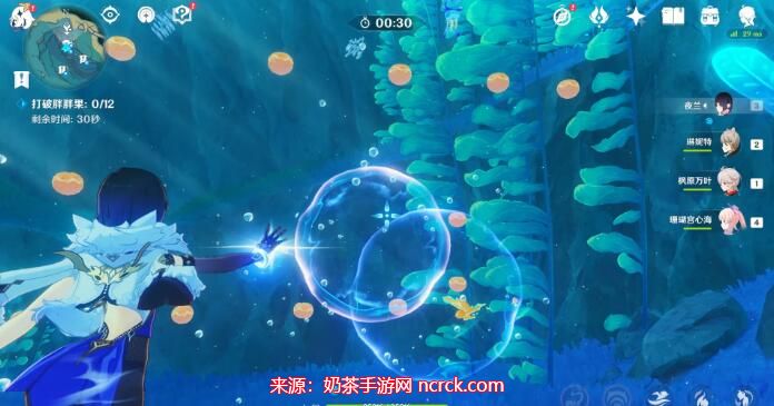 2、摁键盘e,用音波让四个泡泡都显形。