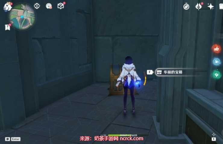 在枫丹廷的第一个宝箱中,我们需要巧妙地运用荒芒元素的力量,攻击宝箱周围的机关