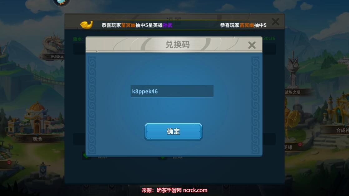 4、复制粘贴获取的兑换码。