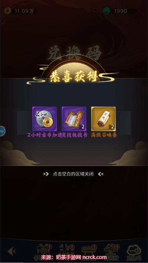 4、最后,点击"兑换"按钮,你将获得高级召唤卷、竞技挑战书等珍贵奖励。