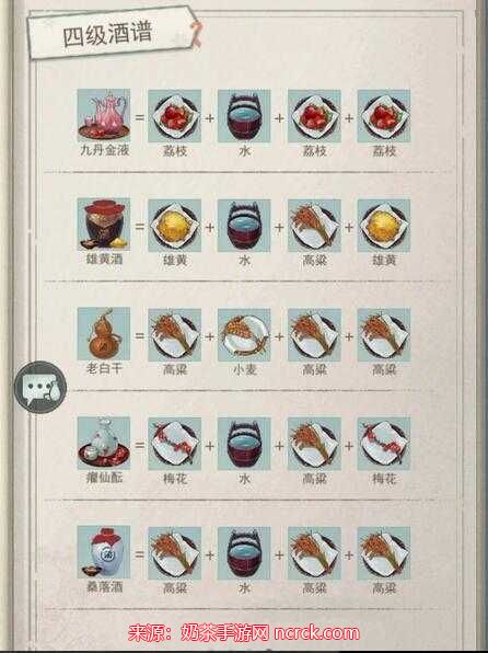 3、瘤仙酝:梅花+梅花+高粱+水,归属:花酒。
