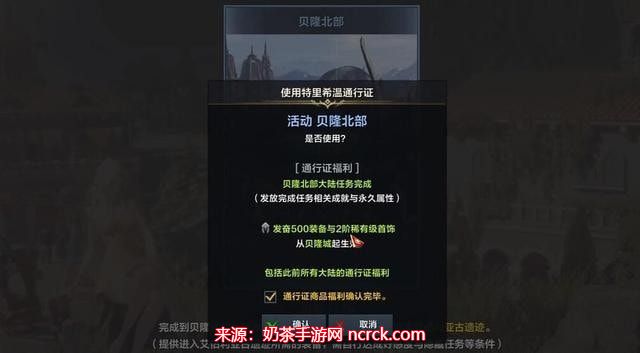 6、贝隆北部直升券可以让你的新角色,直接升为50级满级,并获得一套500评分装备~