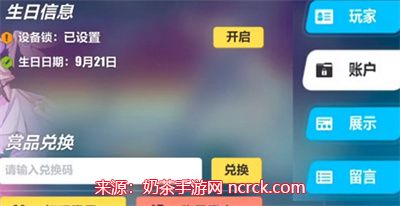 2、在新窗口中选择账号选项,找到并点击“兑换码”按钮。