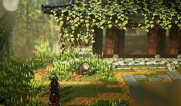 2、然后去到城隍庙,来到图上显示的位置,会触发对话出现一直背剑老猿。