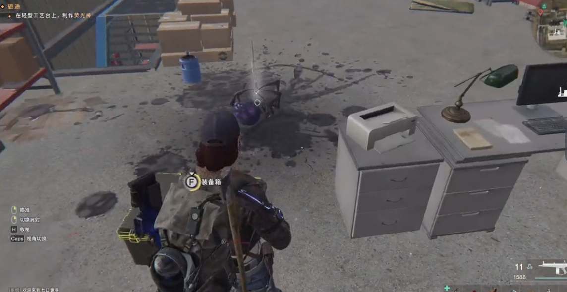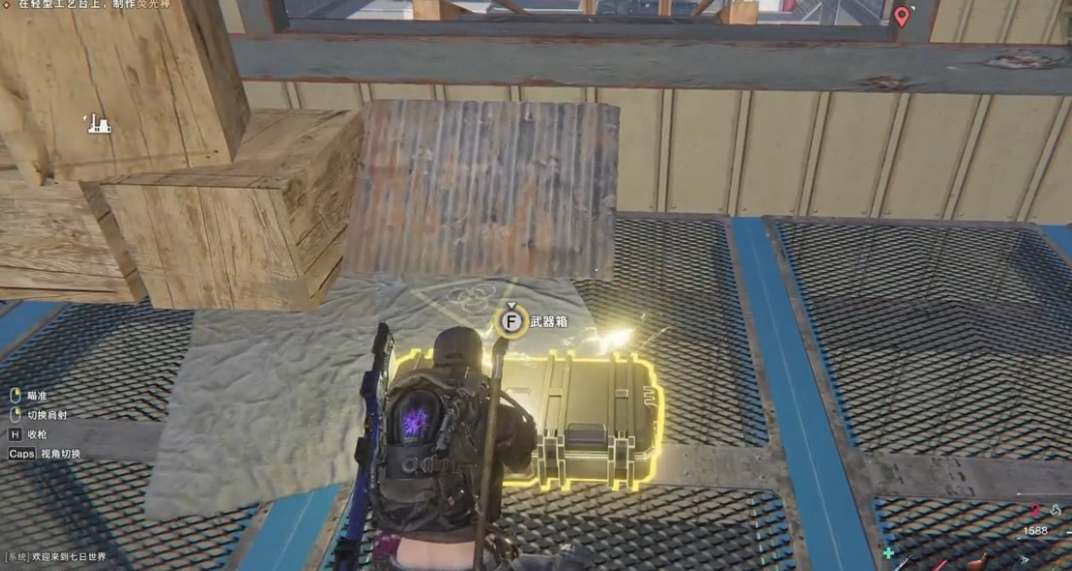 3、第二个装备箱在工厂的房顶阁楼位置,如下图所示: