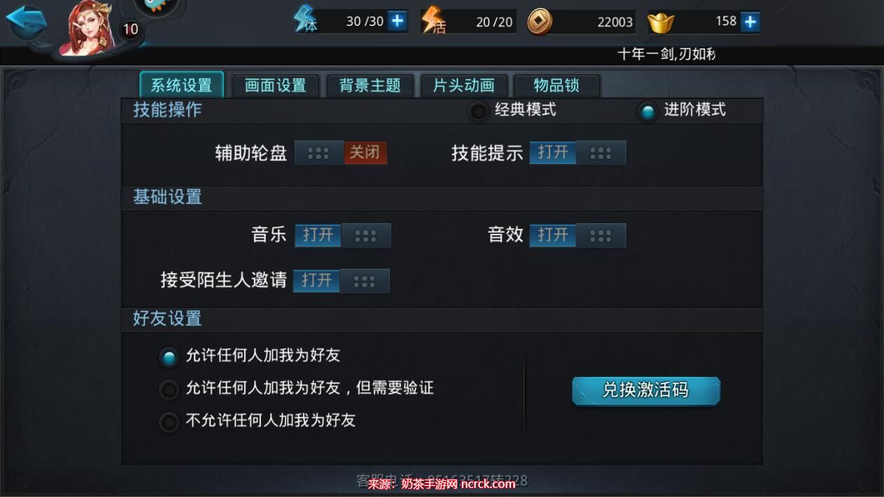 3、进入设置界面后,滚动到底部,你将在右下角找到一个“兑换激活码”的选项。