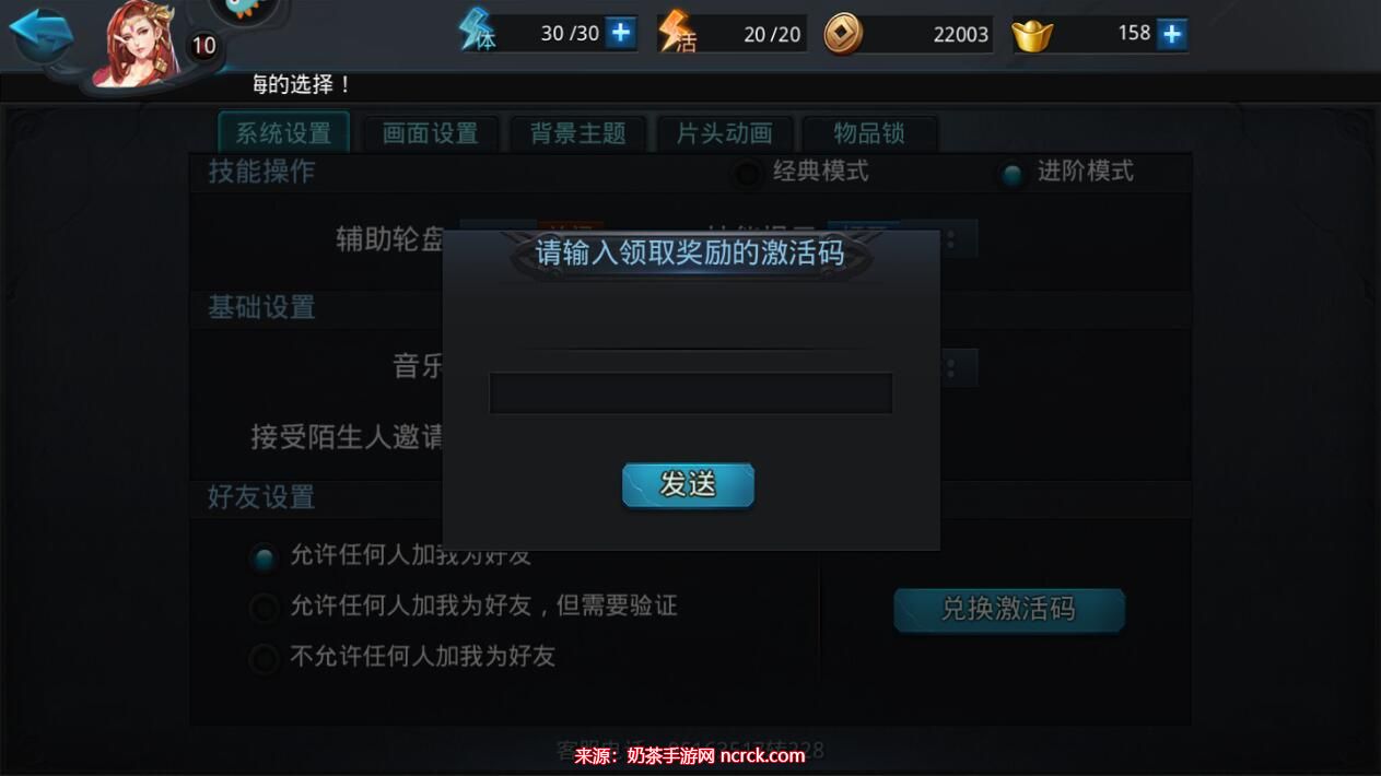 4、点击“兑换激活码”,在弹出的输入框中输入或粘贴你的兑换码,然后点击发送。