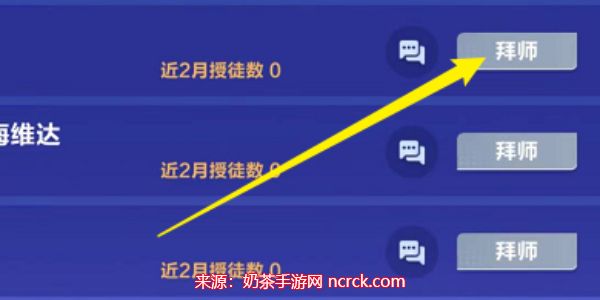 4、进入拜师收徒后,点击右侧的拜师即可进行拜师。
