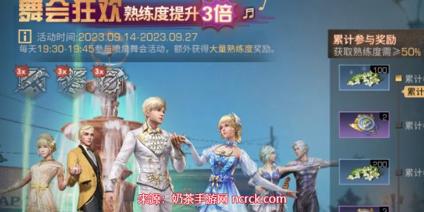 参与喷泉舞会活动将获得全阶段活动熟练度的三倍加成。多次参与可额外解锁精美奖励。