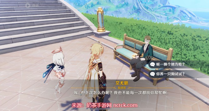 首先,您需要前往枫丹廷沫芒宫后面的花园,在那里的椅子处您会找到NPC艾尤恩。与他进行对话,了解他对工作的不满和失去的食物。