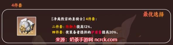 这一套装备以增加护盾量和整体保护能力为主,非常适合那些注重队伍防御的玩家。4件的净庭教宗的圣骑士能有效增强护盾,而2件的筑城者的贝洛伯格则进一步加强了全队的保护能力。