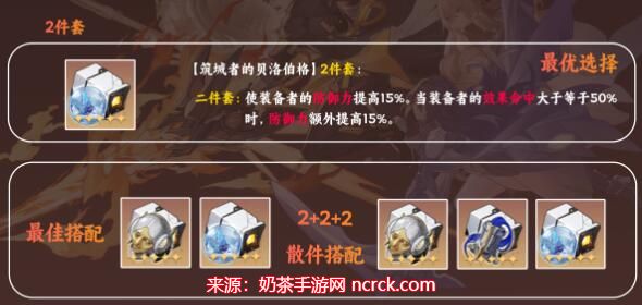 这一方案的核心是筑城者的贝洛伯格的2件套,它提供了防御力和命中效果的提升,还可以增加嘲讽几率。这是一套非常均衡的方案,适用于多种战场环境。
