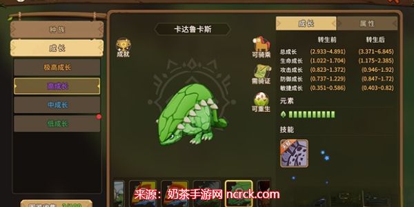 卡达鲁卡斯的防御成长值为1.229,是新手宠物中最为出色的。更为重要的是,它还具有石化被动天赋技能,能进一步增加其承伤能力。而在战斗中,如果运气好的话,还能通过石化技能来持续控制敌人。