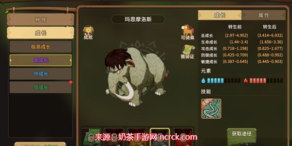 玛恩摩洛斯的生命成长值高达2.4,是所有新手可选宠物中最为出色的。其自带的天赋技能“自然之力”不仅能提供额外的治疗效果,还能大幅度提高角色的承伤能力。如果你是新手玩家,这个宠物几乎是必选。