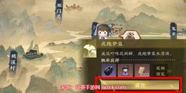 1.首先玩家们需要前往到任务点虎跑梦泉这个领取下来;
