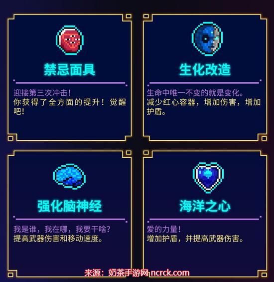 2、生化改造:减少红心容器,增加伤害,增加护盾。