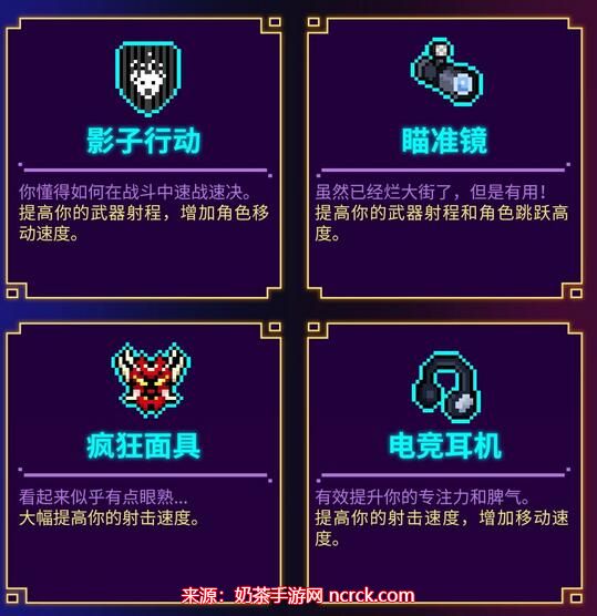 18、瞄准镜:提高你的武器射程和角色跳跃高度。