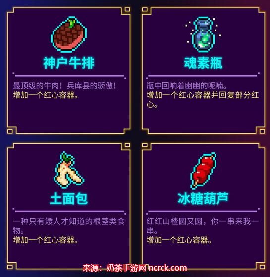 19、巨人烤肉:增加一个红心容器。同时增加你的武器伤害,但是降低你的射击速度。