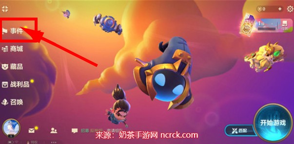 1.进入游戏大厅后,在界面上找到并点击“事件”按钮。