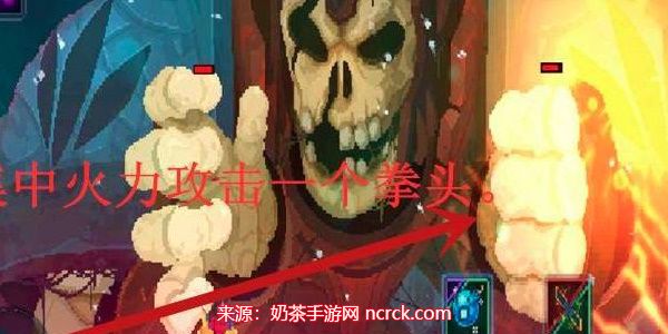 3、进入战斗后,巨人的攻击方式是使用两只拳头进行攻击,所以玩家需要集中火力攻击一个拳头。