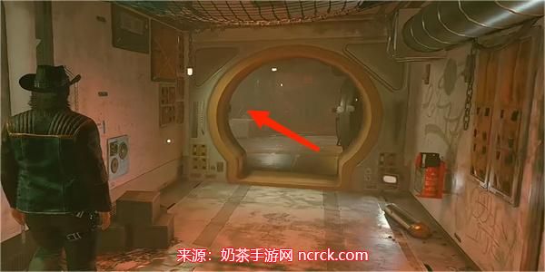 2、然后选择登船之后,就可以跟着箭头一直往前走,穿过门之后就可以左转了。