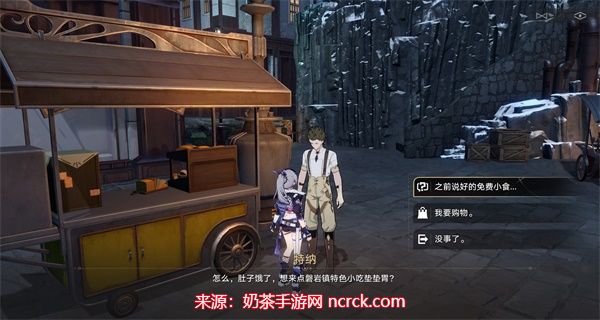 2、接着玩家需要前往攀岩镇的小吃摊,在这里会出售各种贝洛伯格特的特产和美食。