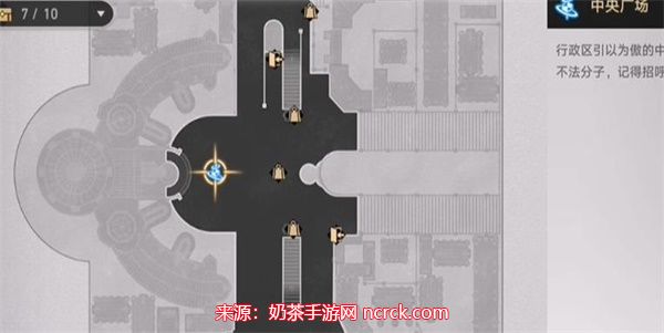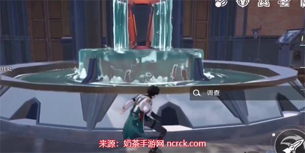 2、一旦到达中央广场,我们就需要往喷泉的地方前进。根据任务提示,靠近喷泉并点击调查按钮。