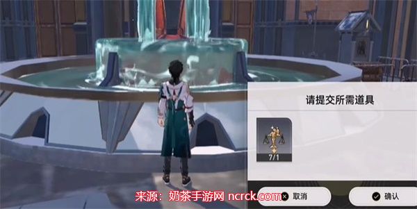 3、我们与喷泉进行剧情对话,在对话途中我们需要把道具提交给喷泉,完成剧情对话。