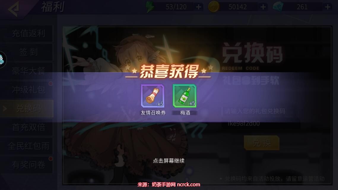 4、点击兑换就可以获得友情召唤券、梅酒等奖励了