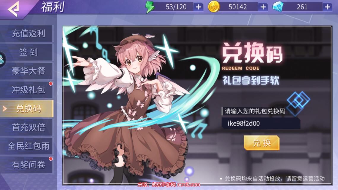 3、复制粘贴小编为大家整理的兑换码: