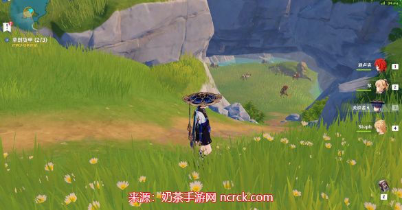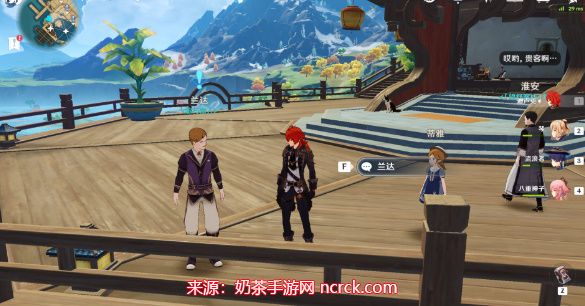 1、在望舒客栈观景平台上,与枫丹商人兰达对话接取任务;