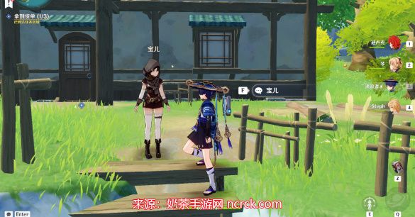 4、前往任务指引地点,在山上房子前与盗宝团宝儿对话,交付3颗夜泊石即可拿到货单;