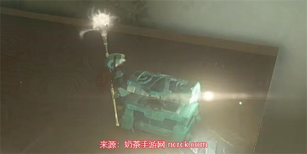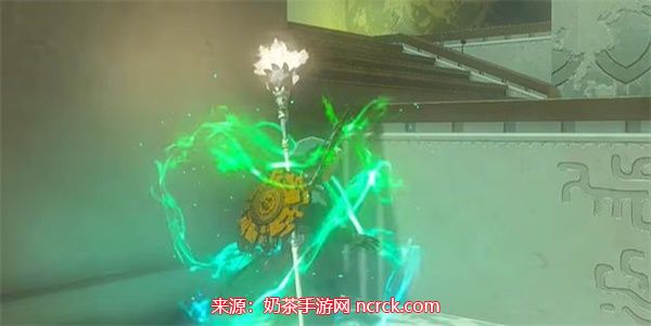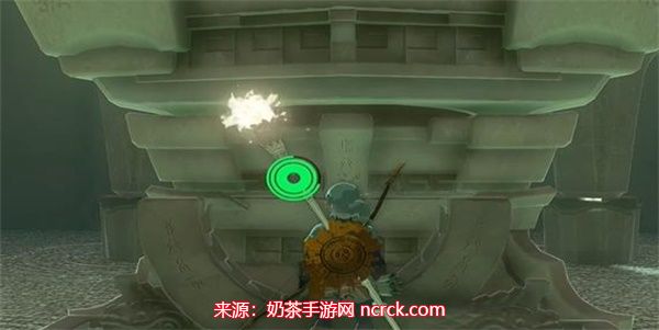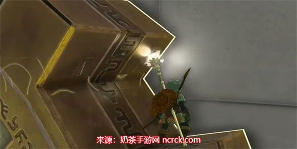 4、从高台跳下来,我们使用究极手把柱子放置在两端,就可以启动机关打开通往兹拉卡米卡神庙的出口。