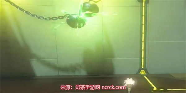3、继续使用究极手把铁球搭在柱子上,触发齿轮转盘,我们使用倒转技能使齿轮在转盘倒转,乘坐上齿轮转盘就可以看见宝箱的位置了,打开宝箱即可。