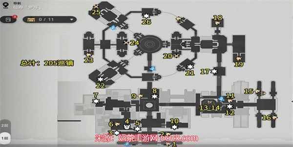 4、可以看见已经标记好的路线图,我们在这里可以找到11-12的宝箱位置。