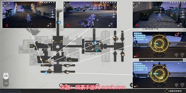 1、按照标记好的路线,我们首先来到太卜司的特定地点,这里隐藏着宝箱1-5。