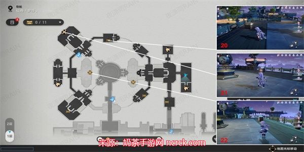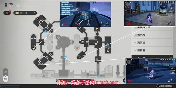 8、继续按照图下标记好的路线来寻找宝箱的位置,可以寻找到22-25的宝箱位置宝箱