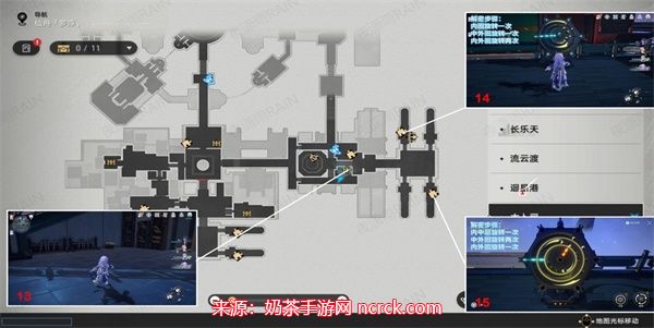 6、按照图下标记好的路线来寻找宝箱,在这里我们可以寻找到宝箱16-19。