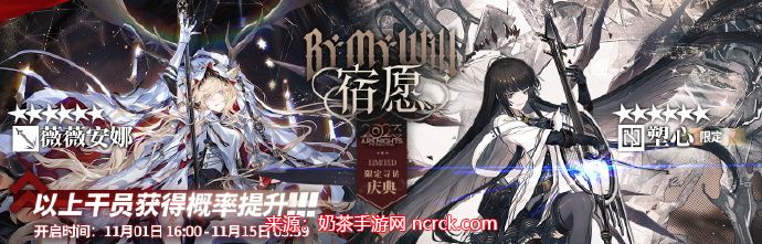 活动说明:活动期间【限定寻访·庆典】-【宿愿】寻访开启,该寻访中以下干员出现率上升