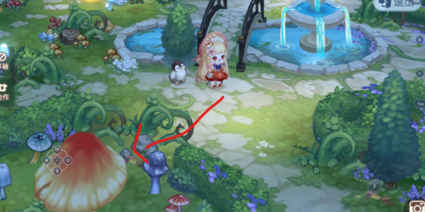 6、到达友谊庄园,往下面走,走到巨大的蘑菇下。