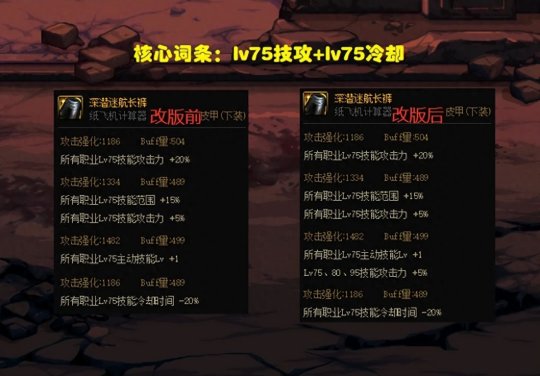 深潜护腿的改动点在于,lv75技能+1级额外又增加了5%技攻,如此一来实际提升就比20属强更大了,成为了首选词条。