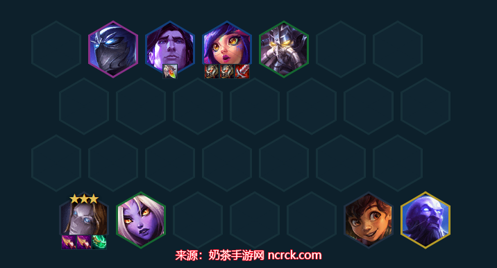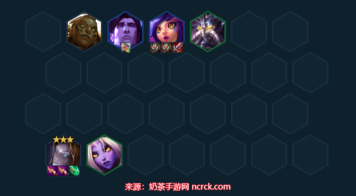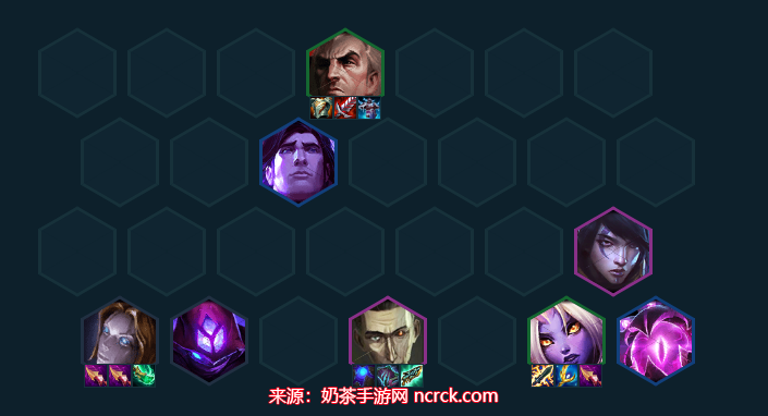 这套和高法师发条乌鸦奶莉鸦玩法类似,不过是前排换成堡垒系列的卡,前排固定的双抗坦度可以更佳,而且有妮蔻存在可以吃很多以绪塔尔的格子来提升战斗力。