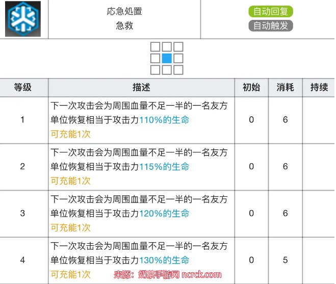 专精继续提升了恢复量,目前看来极限能力不如急救,推荐培养至专三,但是不推荐优先培养。