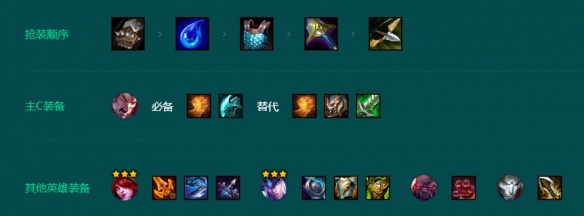中期可以尽快上6找一张诺手,可以开3艾欧打工,肉装可以先给刀妹。减伤是很强的