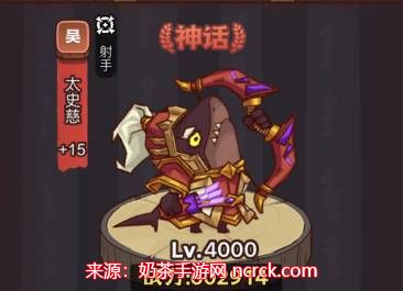 太史慈:太史慈是神话品质的咸将,射手位置,拥有超高的输出能力,战斗过程中可使自身攻击,暴击和生命都得到大幅度提升。