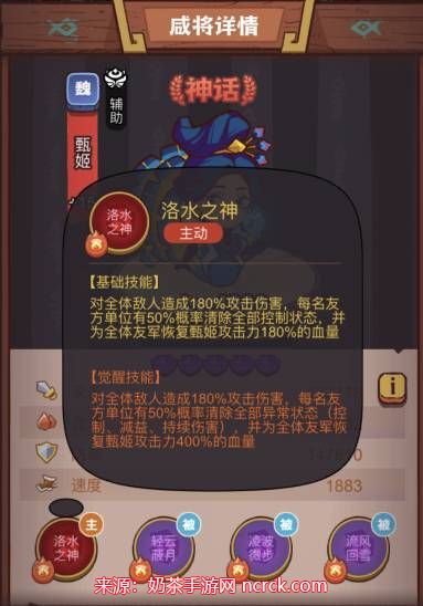 甄姬:甄姬是魏国神话品质的咸将,战斗中可使自身属性大幅度提升,并及时为生命值过低的友军进行恢复。