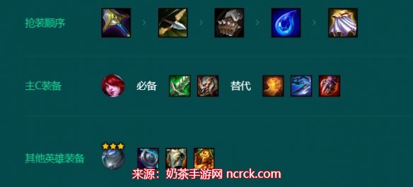 主C霞顶在第一排挨打满蓝直接满天飞羽,左上角右上角都可以,重点可以直接秒对方后排,即使对方有肉装前排也不怕因为霞自带破甲,慎放在霞的旁边,慎带的薄暮法袍也可以削减对方前排的护甲,利用吸血鬼高额的血量,以及装备吸血的持久,飞升后的霞可以收割战场,后期有阿狸可以放在霞的后边,阿狸的破发效果可以保证霞能在第一时间秒掉对方的前排,如果对面是皇子,奎桑提就要是使用第二套占位。